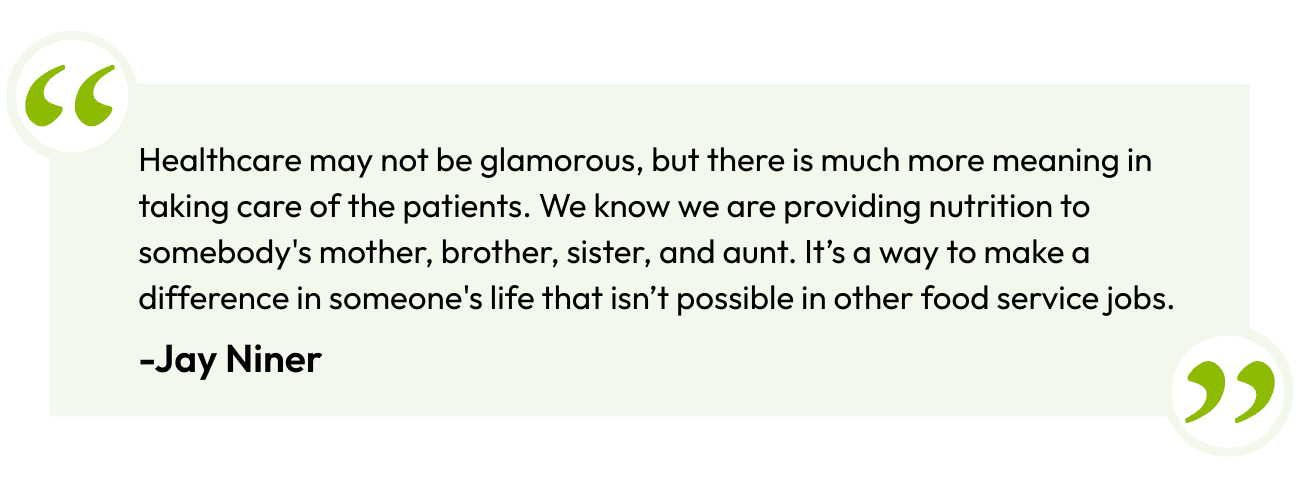But after years of weekends, late nights, and long shifts in luxury hotels and upscale restaurants, he discovered that healthcare food service offered something different: more predictable hours, better pay, and, most importantly, a deeper sense of purpose.