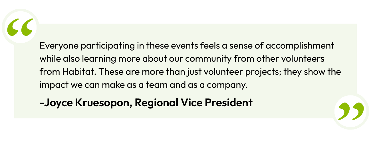 The associates spent the day painting boards for duplexes that would typically sell for $1.3 million each. However, thanks to contributions from companies and other organizations, including $5,000 from Morrison Healthcare, Habitat is able to sell these homes for approximately $300,000 and also assist families in obtaining affordable mortgage financing.
