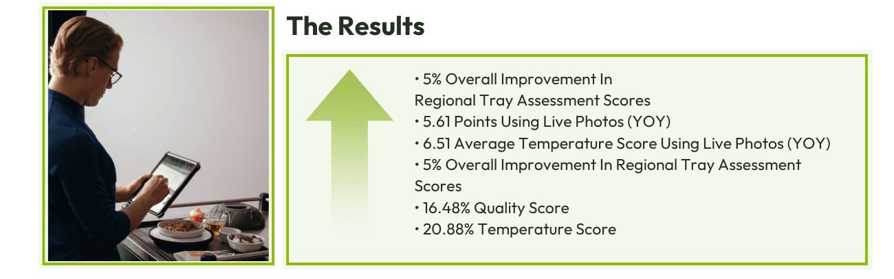 The team identified a viable opportunity to enhance accountability and compliance around patient traylines. Onsite teams completed virtual walkthroughs of safety & retail assessments to test if a “Facetime” style interaction would gain valuable information with accounts and provide data that could be used for process improvements. The result? Improved performance for the culinary team and patient solutions teams. These improvements engage onsite teams to collaborate to define best practices and improve the experience.